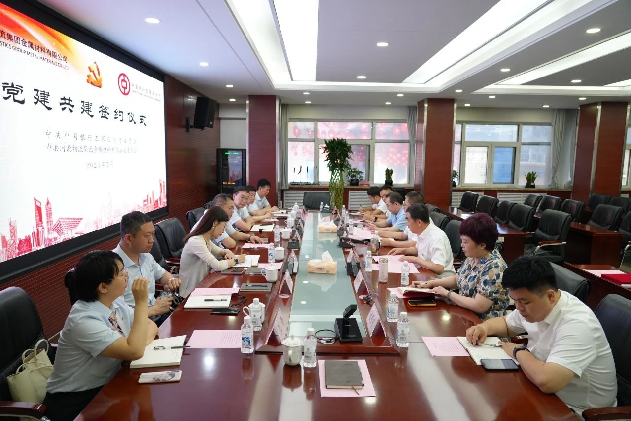 2023年7月21日,中共中國(guó)銀行石家莊分行委員會(huì)與中共河北物流集團(tuán)金屬材料有限公司委員會(huì)舉行黨建共建簽約儀式,中國(guó)銀行石家莊分行黨委副書(shū)記、副行長(zhǎng)韓蔚一行與金屬公司黨委書(shū)記、董事長(zhǎng)張有貴等公司領(lǐng)導(dǎo)進(jìn)行交流座談。